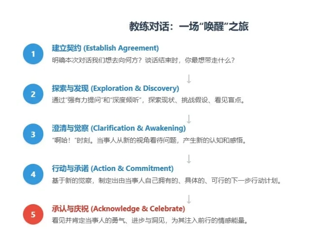 这个过程,我们称之为“教练式对话”。它不是“告知”,而是“唤醒”。