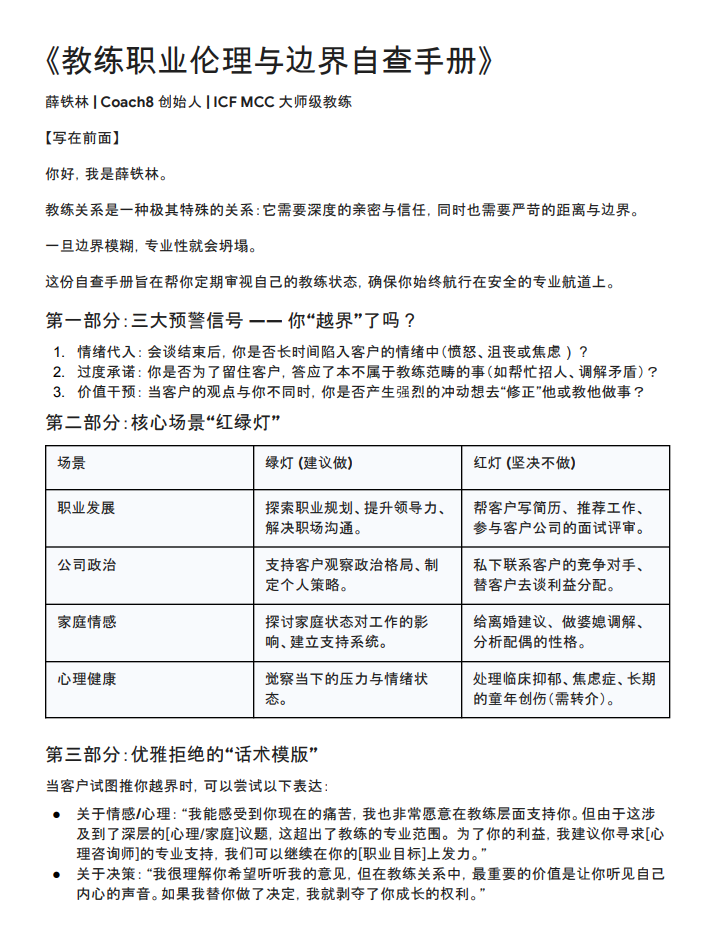 《教练职业伦理与边界自查手册》PDF