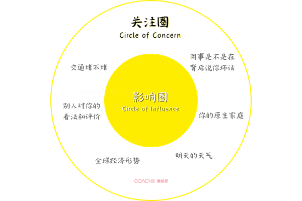 1、外面的大圈,叫“关注圈 (Circle of Concern)”