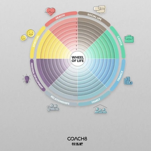 你可以尝试用一些简单的教练工具进行自我探索,比如画一个“人生平衡轮”,看看自己在亲密关系、事业、健康、个人成长等领域的现状,找到自己真正想改善的地方。