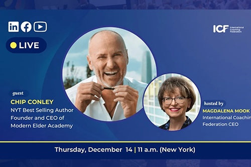 当我们用智慧和目标重塑中年时,会出现什么可能性?本月,我们将在 ICF Live 上与《纽约时报》的奇普·康利 (Chip Conley) 一起探讨中年之旅。畅销书作家、现代老年学院创始人兼首席执行官。我们对老龄化的假设决定了我们如何指导客户度过中年过渡,因此,我们于 12 月 14 日星期四上午 11 点(纽约)与我们的首席执行官 Magdalena Nowicka Mook 和 Chip 进行的及时对话将扩大我们对挖掘中年潜力(广泛定义为35-75)及以上...