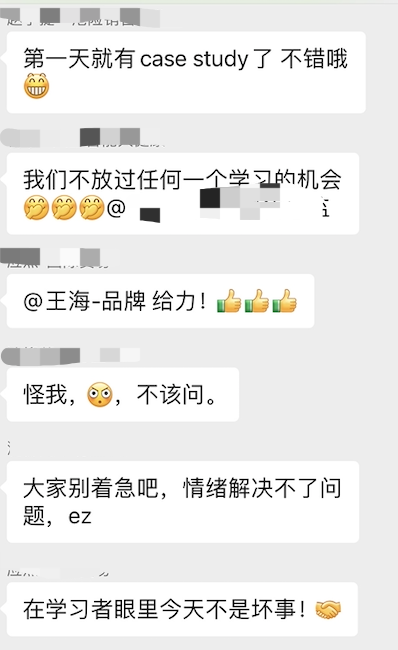 我在某学习群内,有人不知从何得知晚上有首次集体活动,带着犹疑的语气跑来问班班。班班顺势做了肯定答复,然后忙着招呼其他新人入群。