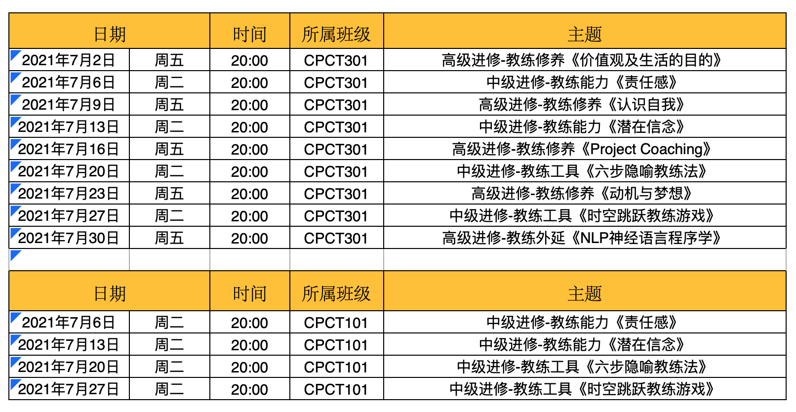 2021年7月主题课程时间安排表