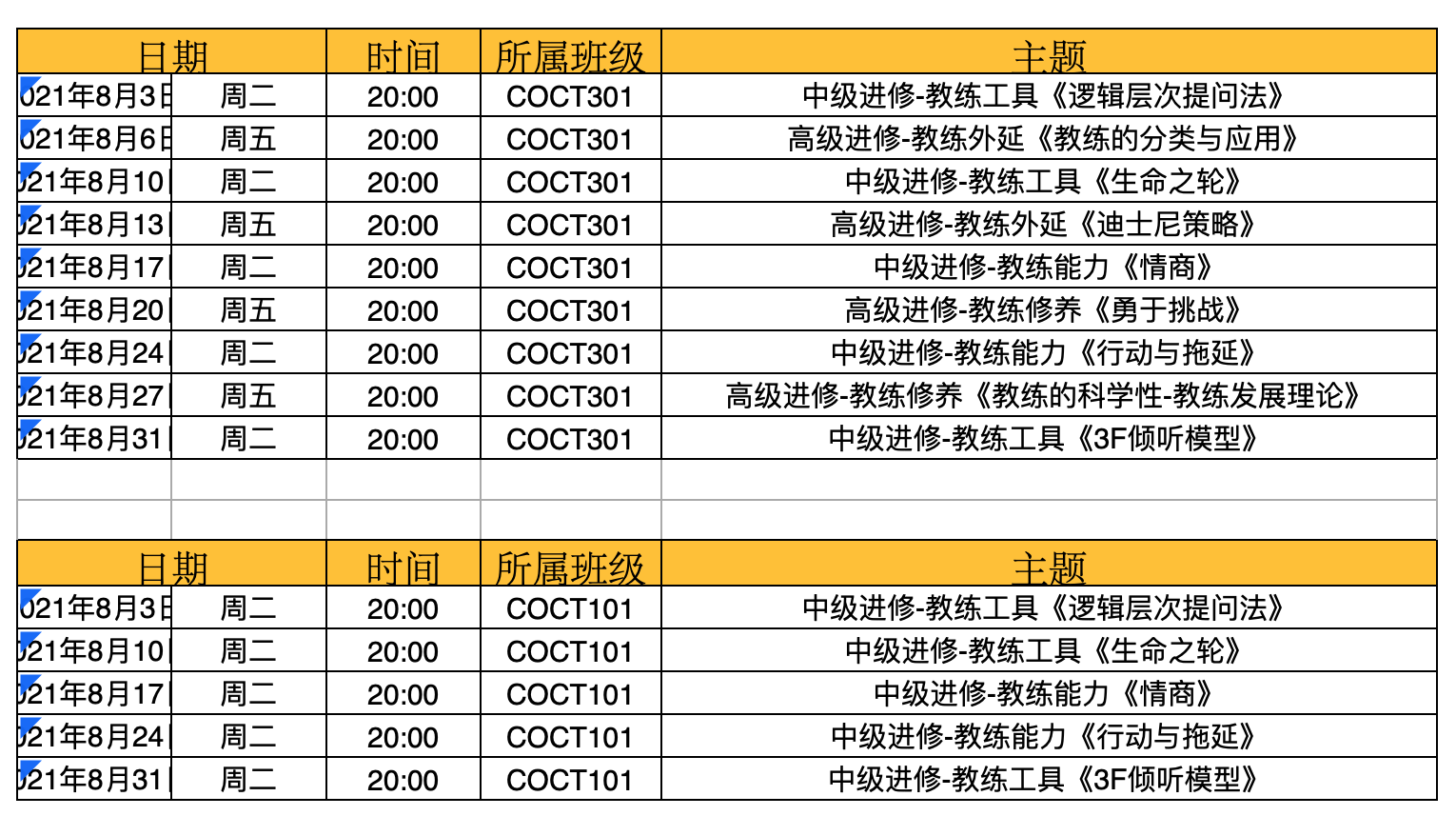 2021年8月主题课程时间安排表