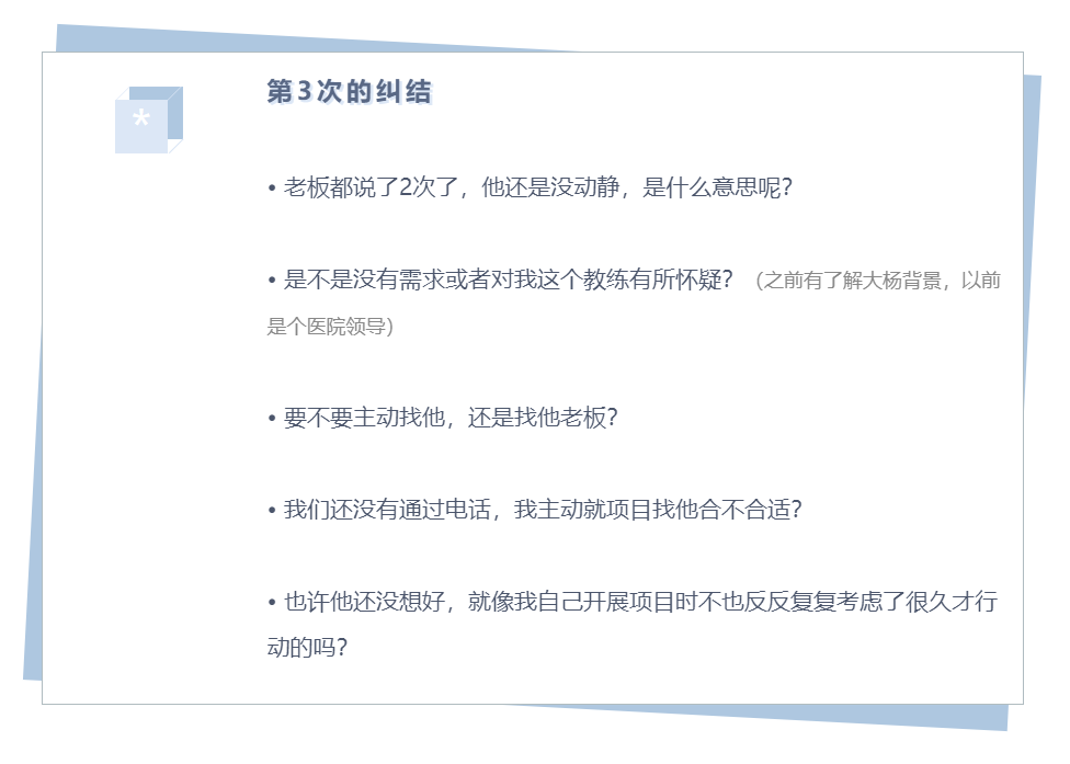 允许客户有反复、有纠结、有等待,我自己不也有吗?我希望我的教练怎么对我,我就要怎么对客户;