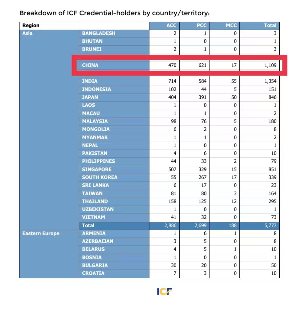 ICF将“教练”定义为与客户在发人深省和富有创造性的过程中进行合作,激发他们最大限度地发挥个人和专业潜力。 (以下数据都是截止到发稿日的统计,数量会随着日期的变化而发生变化。)