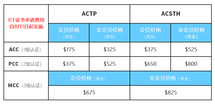 8、2022年8月1日ICF证书申请费用有变化吗?