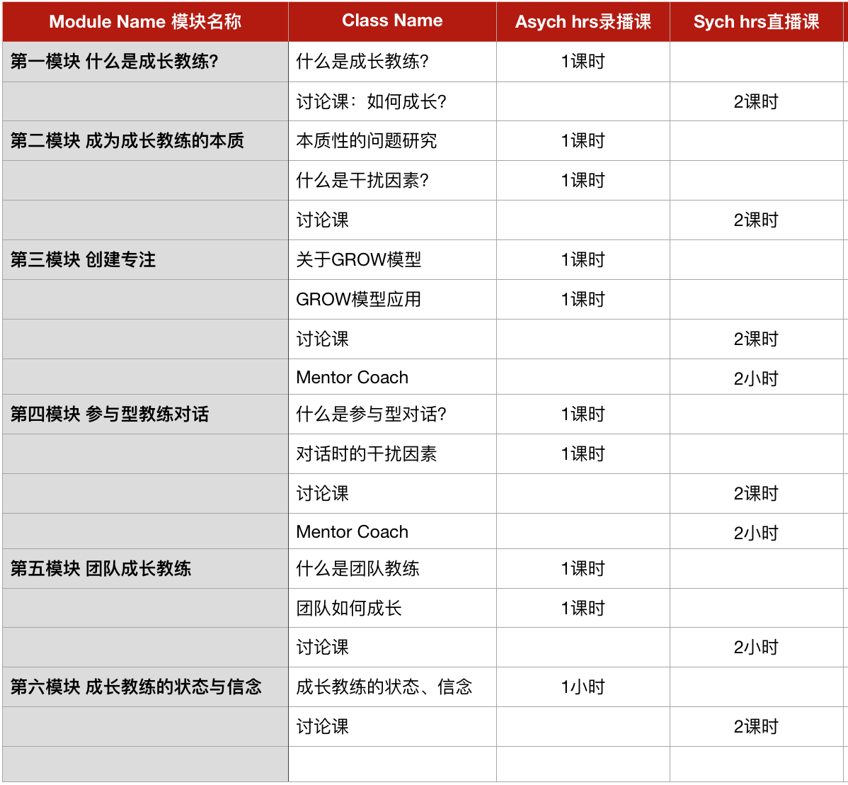 录播课+直播课 = 26小时,另有Mentor Coach辅导时间