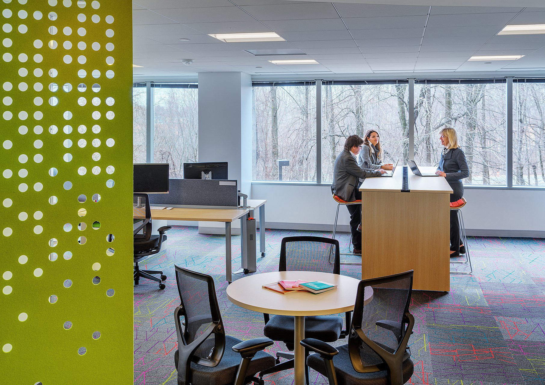 新设计提供了一个灵活、开放、敏捷的环境,可以在任何角落、任何区域内和任何时候进行连接。这是一个客户可以参与并与ICF员工联系的空间,以及触摸、看到和感受ICF众所周知的尖端技术和解决方案。交互式多用途演示和演示区域为向客户演示技术提供了展示。受ICF伦敦办事处启发的带长椅座位的封闭式工作站为头脑风暴会议提供了区域。新的开放外观允许员工和客户以新的方式参与和互动,例如通过研讨会和可行性测试,以及开放空间,为即兴协作和对话提供机会。新设计通过提供替代工作设置来完成这些任务,以适应不同的工作风格。它提供了选择;满足代际、人口和工作风格差异的选择。拟议的工作环境将为ICF提供不同级别的营销机会,建立联系并培养关系。