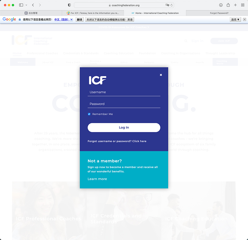 ICF(国际教练联盟组织)网站的会员密码忘记了,怎么找回?
