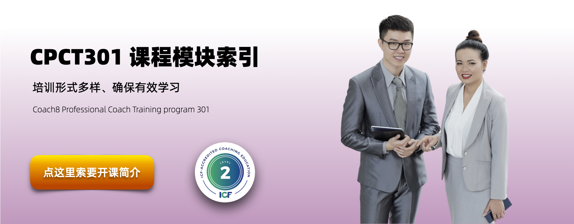 进入Coach8 CPCT301课程(Level 2,即原ACTP课程),一定要经历充分的学习,ICF要求PCC(专业级)教练的基本培训学时为125小时以上,所以完成充分的学习学时对于教练学习者非常重要。Coach8为了更有效地帮助学习者真正的、全面的成长起来,采用了线上教学、社群式学习、翻转课堂、推动式学习(树状教学)等教学方法(了解Coach8的教育理念请 点击这里查看详情 )。