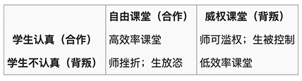 对师生共同来说,最好的结果是自由课堂、学生认真,建立高效率课堂,但整个游戏的纳什均衡落在教师威权、学生不认真的低效率课堂上。