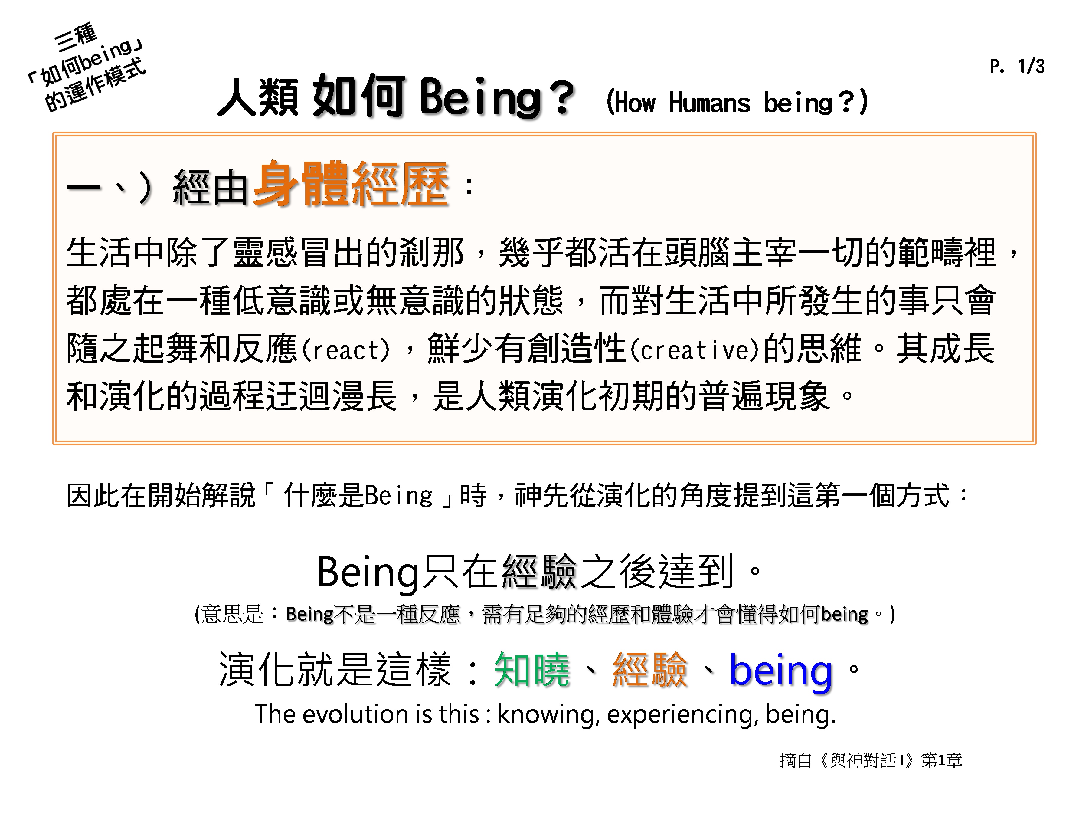 因此在神开始解说「什麽是Being」时,就先从演化的角度提到这第一种方式: