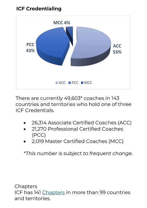 截至2023年1月10日,在全球143个国家和地区里,有49603名教练持有三类ICF认证教练证书。其中——