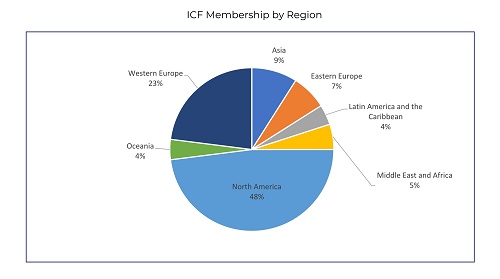 ICF在170个国家和地区拥有56400个会员,在99多个国家拥有超过141个分(ICF分会是用来发展ICF成员及线下活动的公益性组织)。