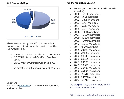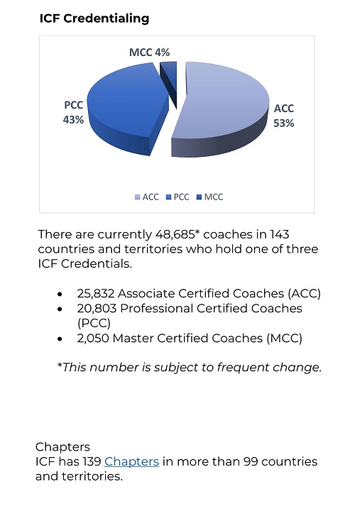 ICF将“教练”定义为与客户在发人深省和富有创造性的过程中进行合作,激发他们最大限度地发挥个人和专业潜力。 (以下数据都是截止到发稿日的统计,数量会随着日期的变化而发生变化。)