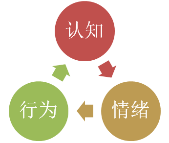 信念/价值观、情绪、行为这三个变量合在一起构成认知三角形。它们相互关联,又彼此影响。信念是情绪产生的源头,情绪引发行为,行为又会反过来强化影响信念。事实上情绪不是由某件事而直接产生,而是由人们对这个事物的认知及背后的信念系统所引发,事件本身并无好坏对错之分,而人们的认知与信念系统可以赋予事件好坏对错的属性。