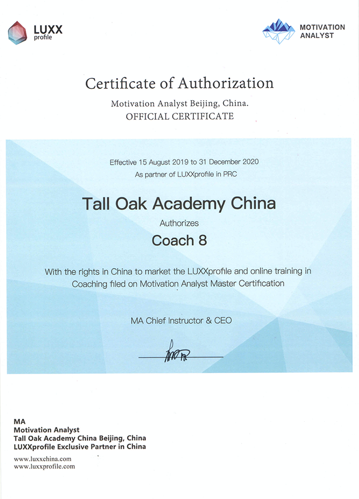 LUXX中国授权Coach8为中国教练领域唯一的在线认证机构