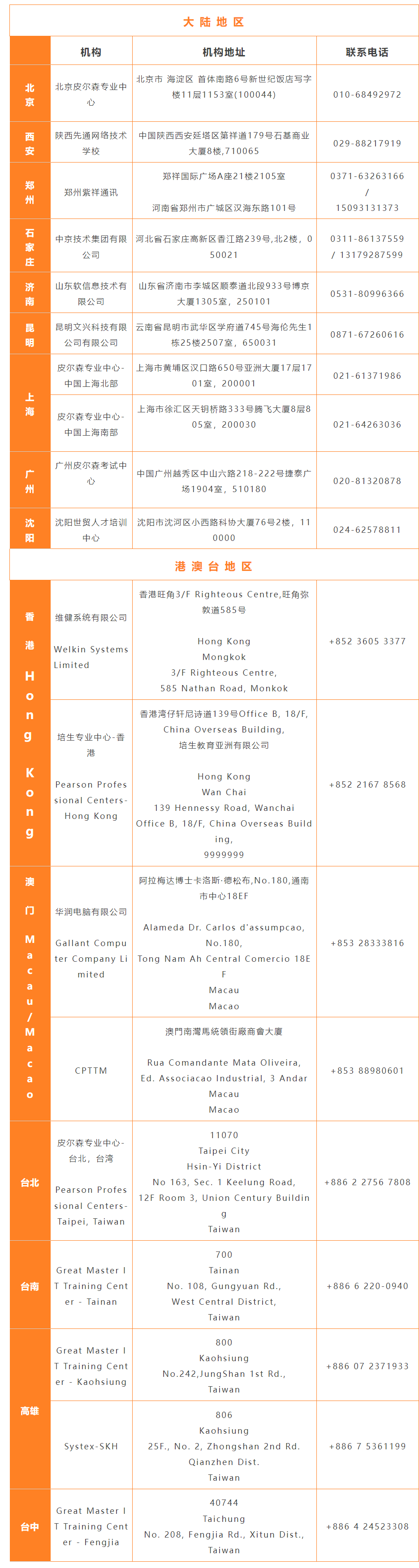 以下是截止到2023年6月18日,VUE更新的在中国地区可以进行考试的考场信息: