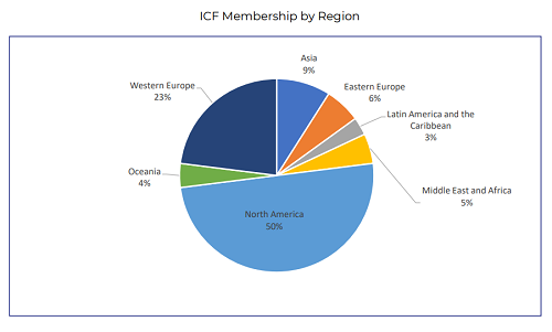 ICF在163个国家和地区拥有51108个会员,在99个国家拥有超过140个分会(ICF分会是用来发展ICF成员及线下活动的公益性组织)。