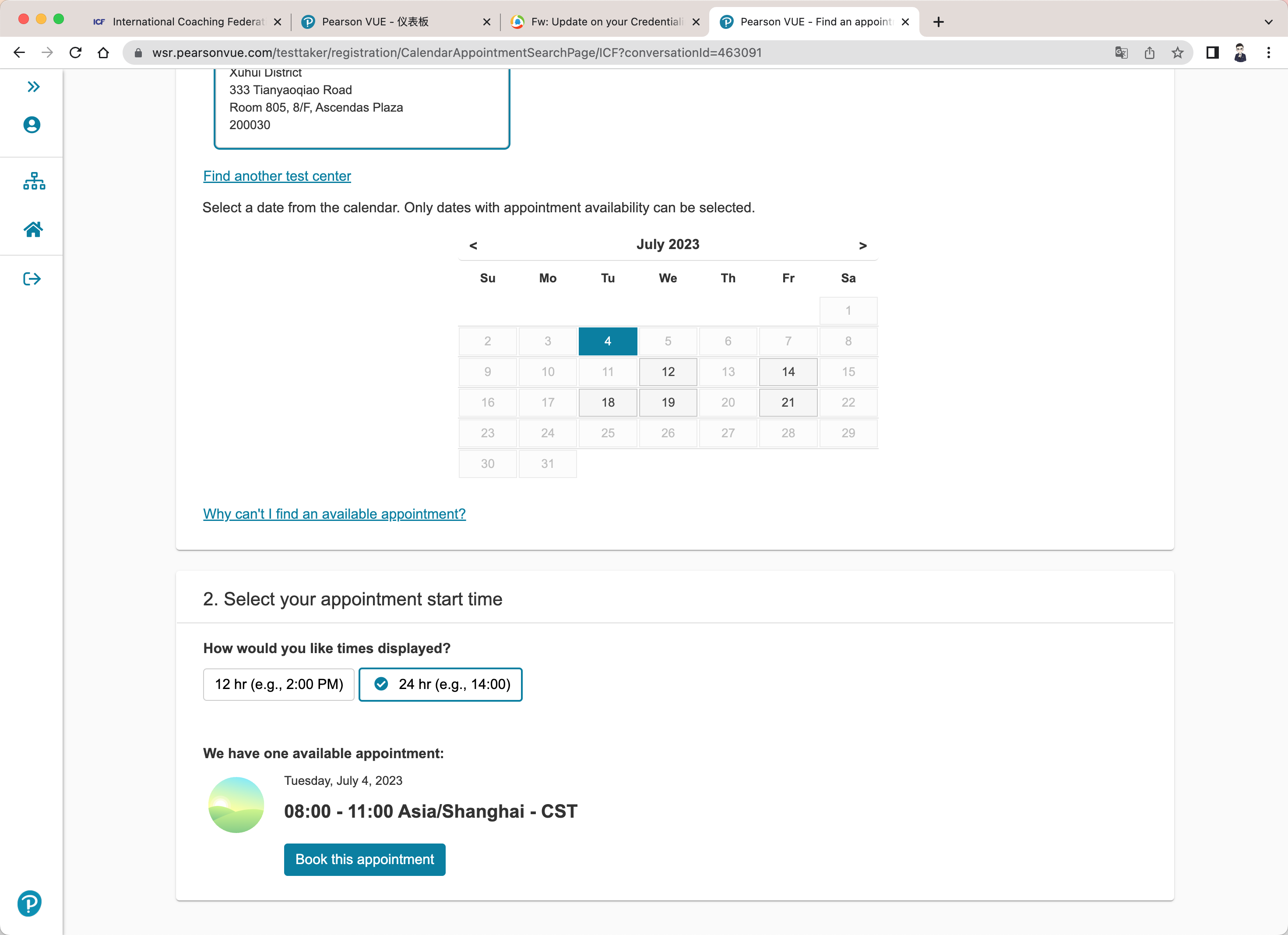 选择考试的地区和地址,这个要根据自己的实际情况填下,然后选择日期和时间(图后会继续详细说明步骤)
