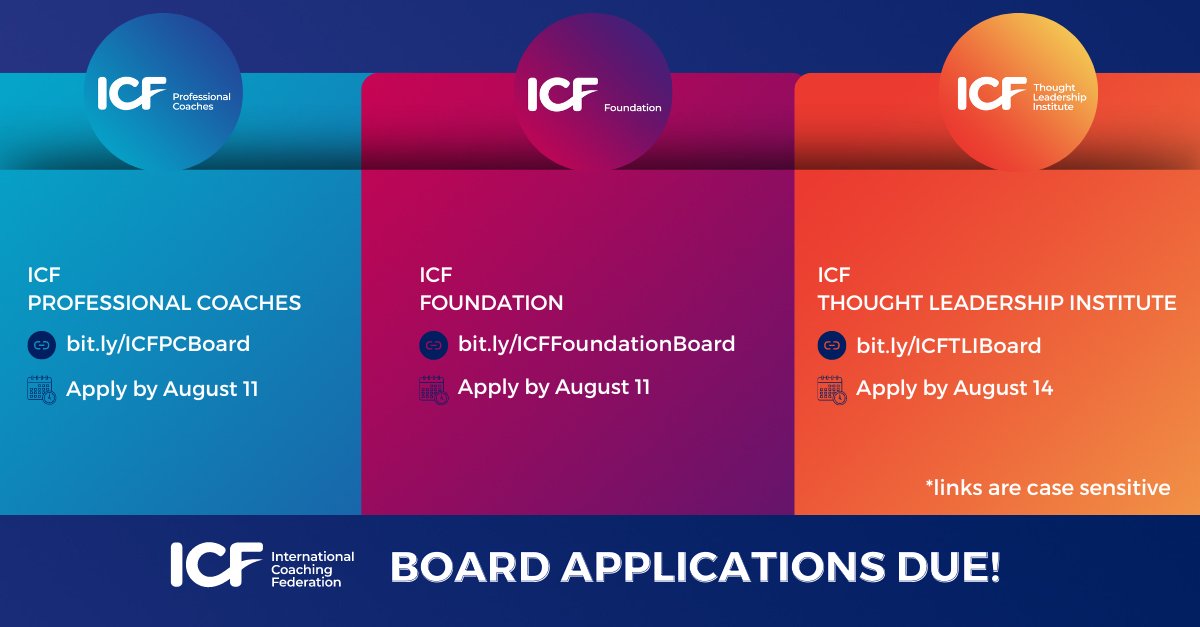 您只剩三天时间申请 2024 年 ICF 职业教练全球董事会。 申请截止日期为 8 月 11 日下午 5 点(纽约)。