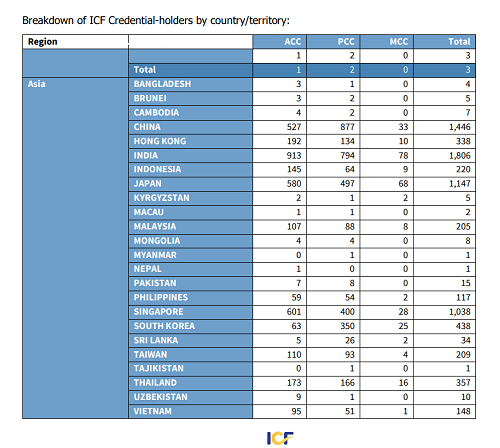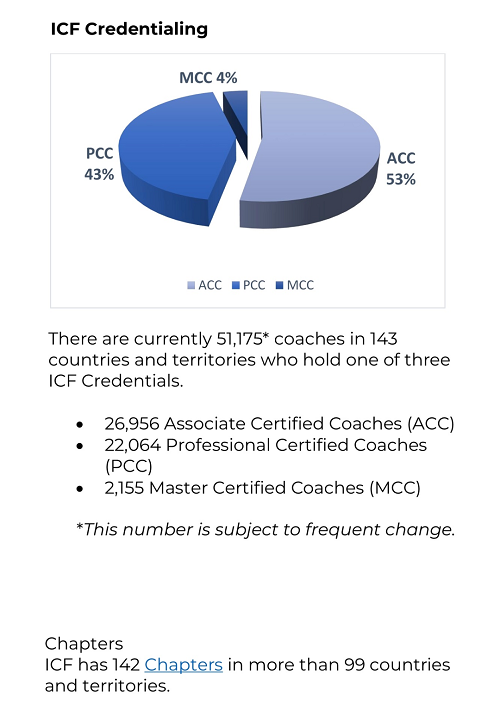 ICF将“教练”定义为与客户在发人深省和富有创造性的过程中进行合作,激发他们最大限度地发挥个人和专业潜力。 (以下数据都是截止到发稿日的统计,数量会随着日期的变化而发生变化)