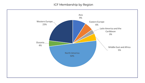 ICF在165个国家和地区拥有55977个会员,在99个国家拥有超过142个分会(ICF分会是用来发展ICF成员及线下活动的公益性组织)。