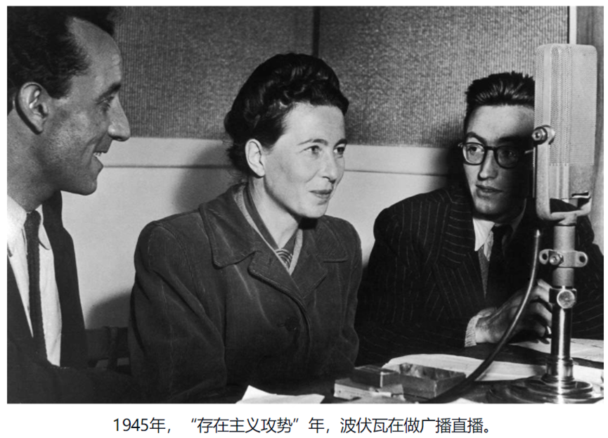 1945年,“存在主义攻势”年,波伏瓦在做广播直播。
