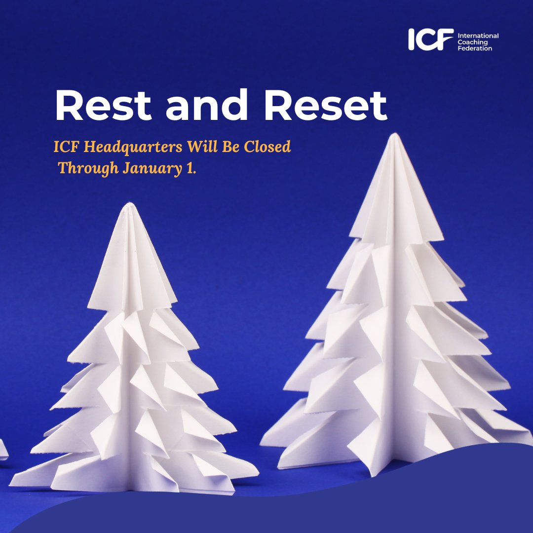 ICF在圣诞节期间办公室关闭,向全球教练发出祝福!ICF办公室将会在2024年1月份重启所有的工作。