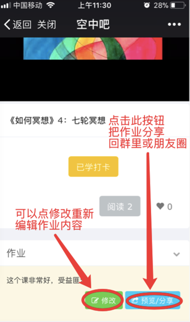 关于作业。同学们听完课一定要写作业 提交,然后分享到群 ,下详细介绍写作业和分享作业的操作