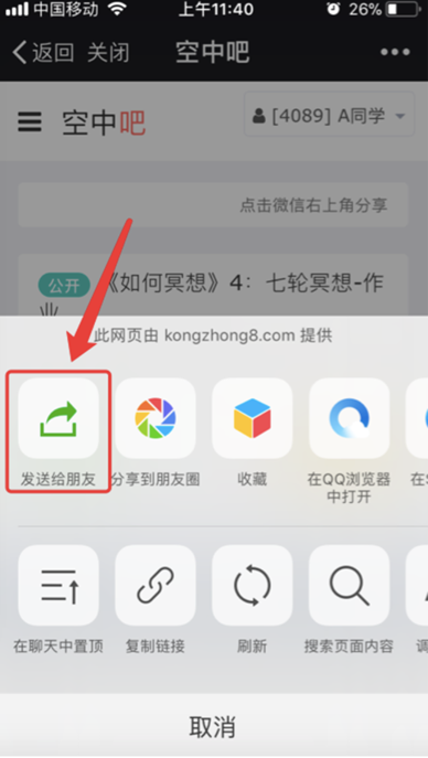 7、选择“发送给朋友”