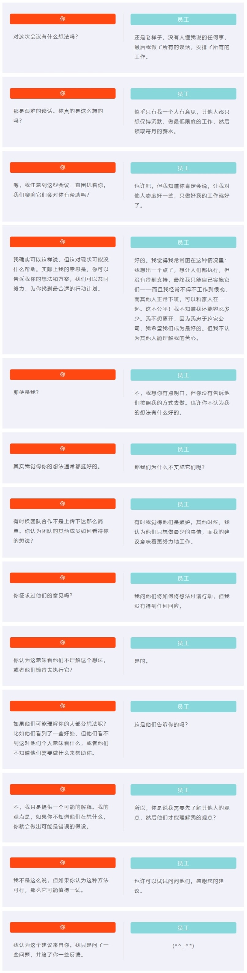 开放式、非定向的教练对话,可能会发现您在日常管理和团队成员互动中,没有发现过的问题。