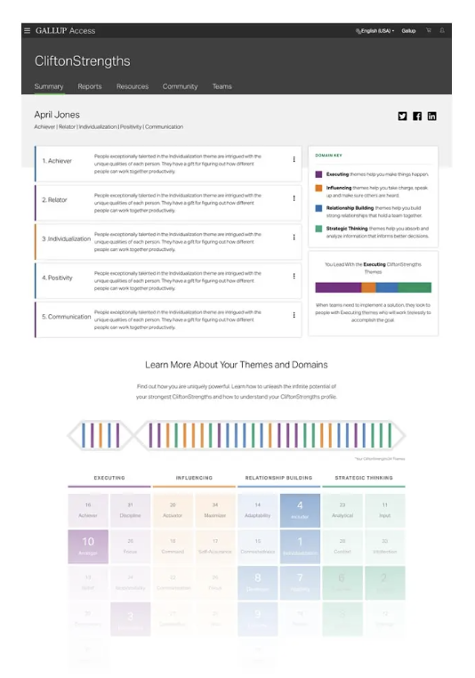 使用 Gallup Access 平台上的个性化控制面板查找资源和工具,这些资源和工具将帮助你了解如何更好地完成你最擅长的工作。