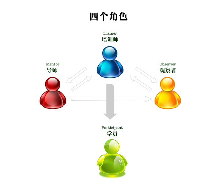 导师、实践者、观察者和上课的学员。