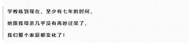 我最大的成果是:原来我在没有学教练之前,我们家里隔三差五就要吵架,所以我特别不喜欢回家。