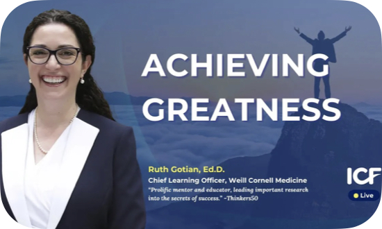 ICF的大老板和威尔康奈尔医学院的学霸掌门人、麻醉学教育的大咖Ruth Gotian博士进行了一场心灵激荡的对谈。这位博士在指导和领导力培训界可是名声在外,她毫无保留地传授了她从诺贝尔奖大牛、宇航员、奥运冠军到NBA球星身上汲取的宝贵经验,曝光了成功背后的秘密武器。她不仅深度剖析了卓越人士的心态和技能,还探讨了这些成功法则如何在我们个人和职业生涯中大展神威。特别是她对奥运教练和运动员辅导关系的见解,简直让人耳朵都竖起来了。快来一起收听这期访谈,充电智慧的营养吧!