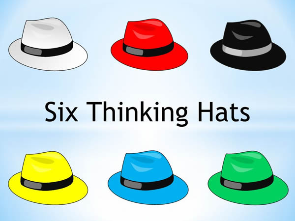 Six Thinking Hats是由 Edward de Bono设计的系统,它描述了一个涉及六个彩色帽子的小组讨论和个人思考的工具。“六个思考帽子”和相关的思想并行思维为团队提供了一种平均的方式,以一种详细而有凝聚力的方式规划思维过程,并且这样做可以更有效地一起思考。
