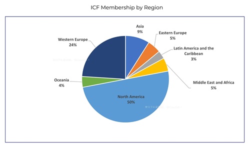 ICF在157个国家和地区拥有60741个会员,在99个国家和地区拥有超过141个分会。