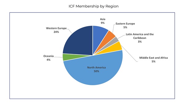 ICF在157个国家和地区拥有61552个会员,在99个国家和地区拥有超过141个分会。