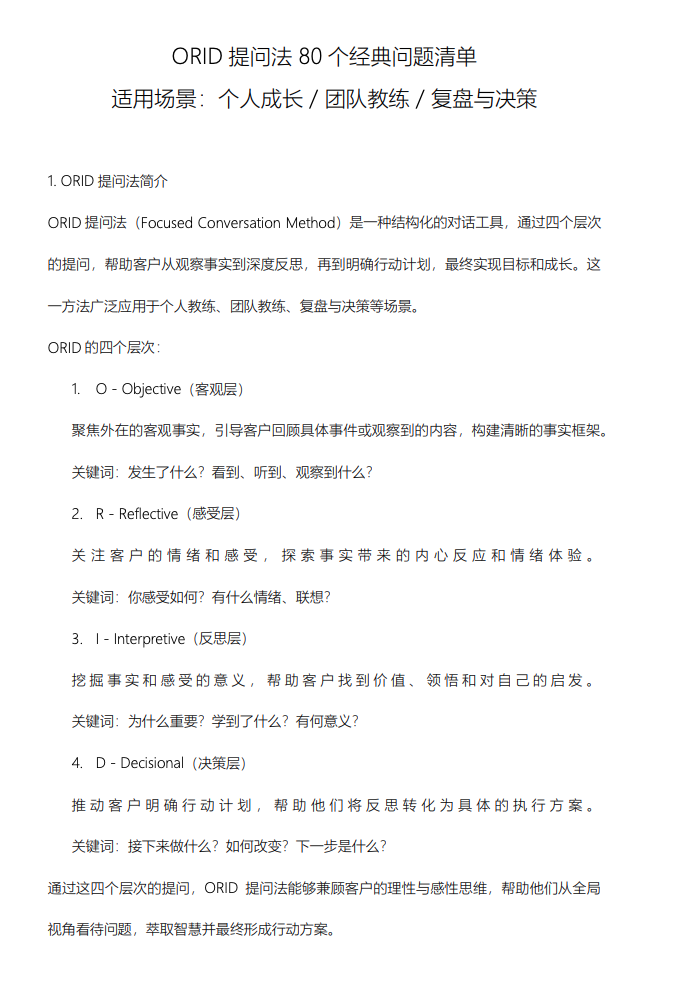 《ORID 提问法 80 个经典问题清单》