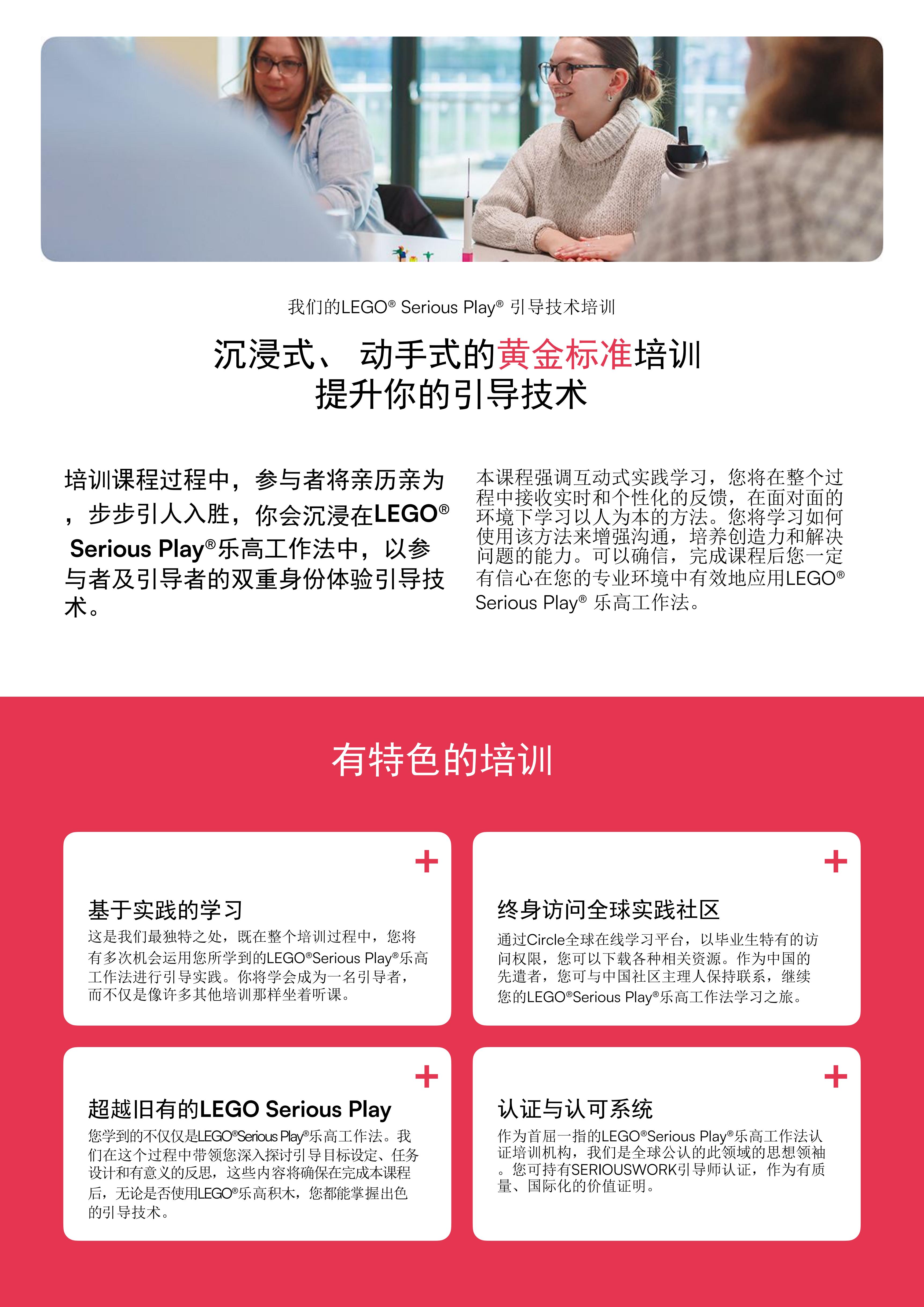 作为首屈一指的LEGO®Serious Play®乐高工作法认证培训机构,我们是全球公认的此领域的思想领袖您可持有SERIOUSWVORK引导师认证,作为有质景、国际化的价值证明。