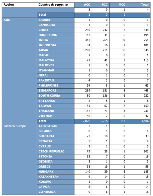 (其中中国大陆地区现有ACC 289人、PCC 242人、MCC 7人)