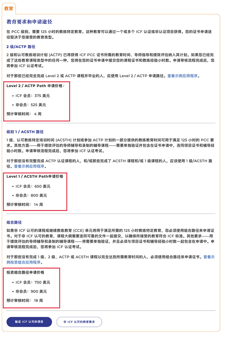 Level 2 / ACTP途径毕业的学员申请费用:ICF会员 375美金 非ICF会员525美金