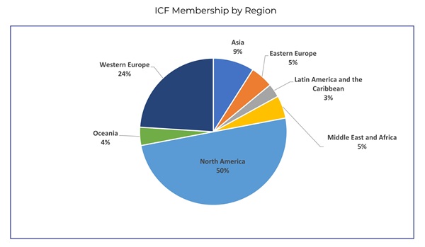 ICF在160个国家和地区拥有63175个会,在99个国家和地区拥有超过143个分会。