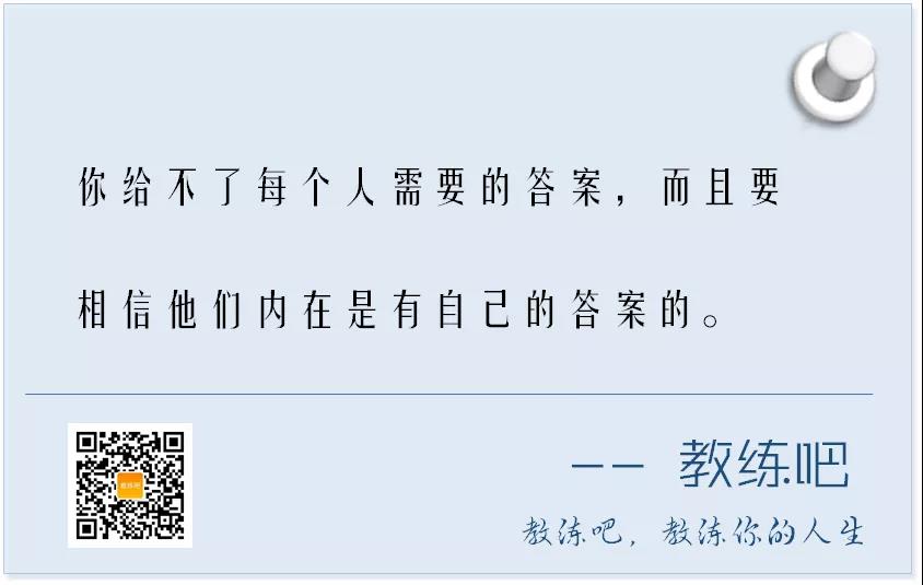 而我只负责去百分百相信他们,认真地有力地倾听他们,再适当地给他们提一些有力的问题,让我们共同创造出来的空间可以让他们自己寻找到属于他们的答案。