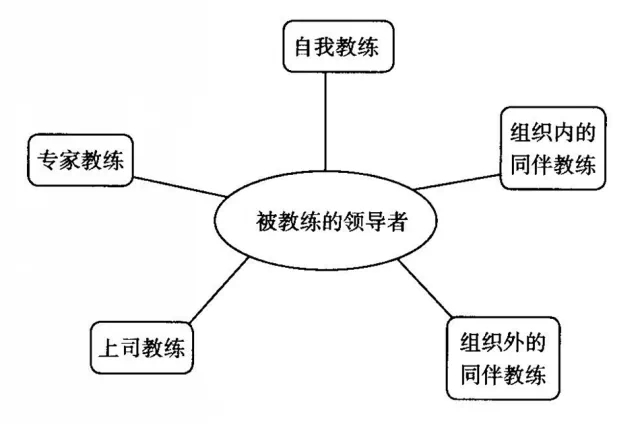 我们已经了解了五种教练类型。每种教练类型代表一位教练或者一类教练,领导者可以从他们那里获得教练与指导(见下图):
