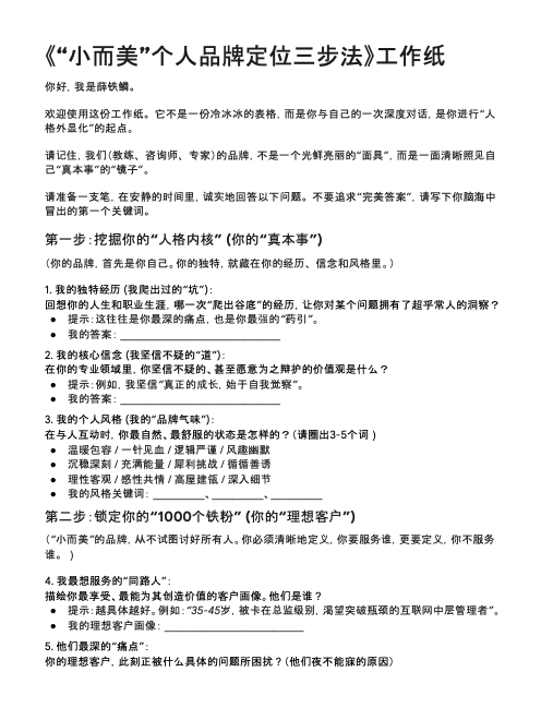 《“小而美”个人品牌定位三步法》PDF 文件