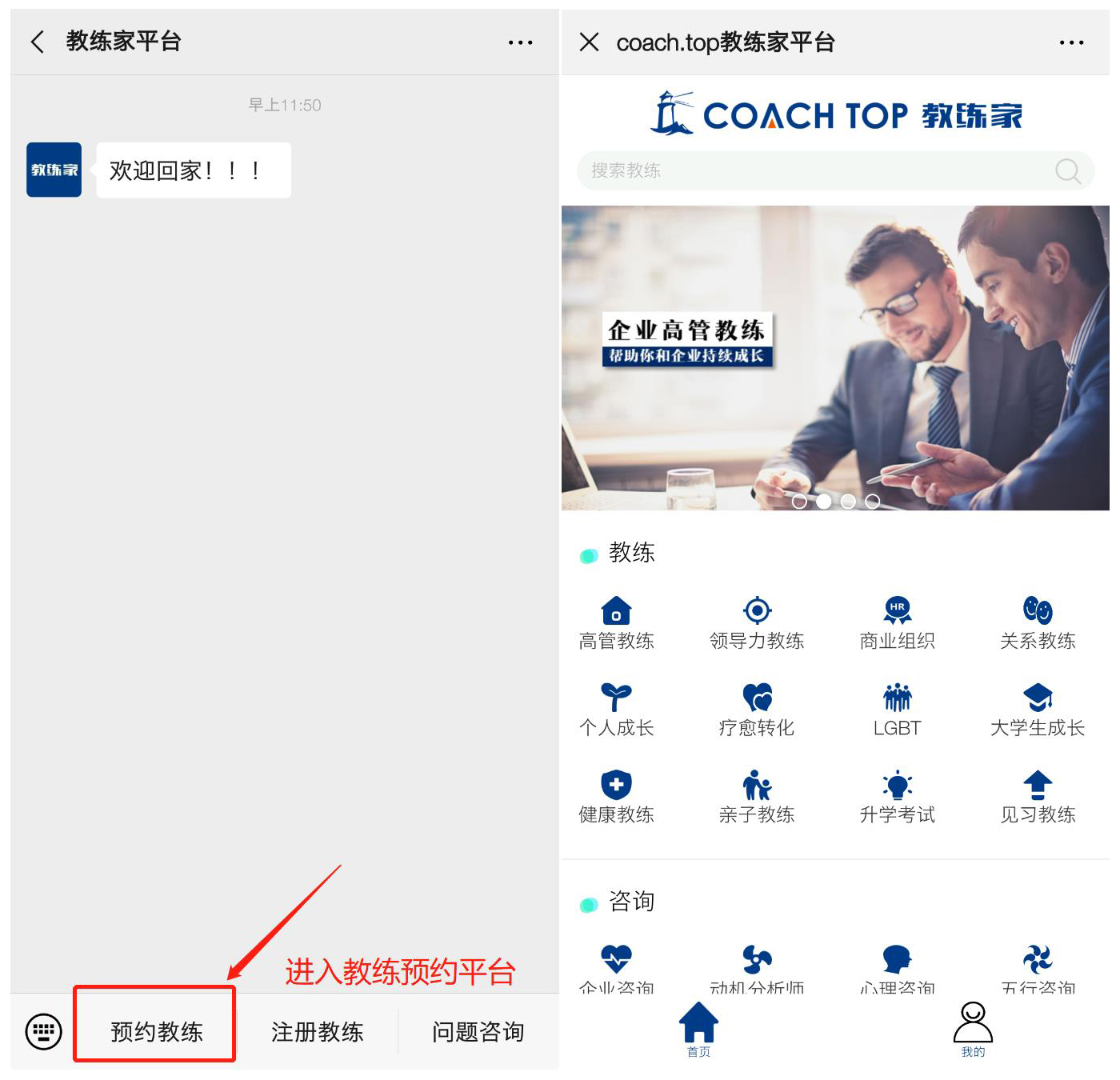 5、 你也可以回到公众号首页点击【问题咨询】联系客服帮你匹配适合的教练