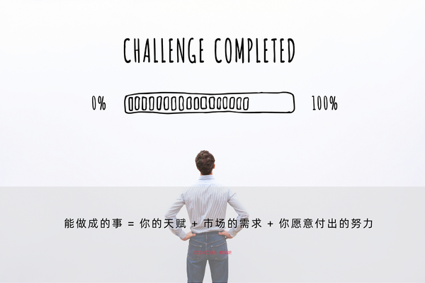 能做成的事 = 你的天赋 + 市场的需求 + 你愿意付出的努力